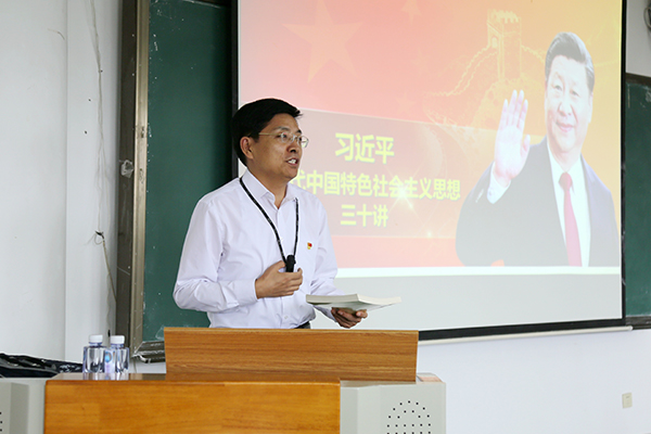 师生作了题为《习近平新时代中国特色社会主义思想三十讲》的宣讲。讲座由学院党委书记王丽萍主持。学院全体党员师生聆听了本场讲座。