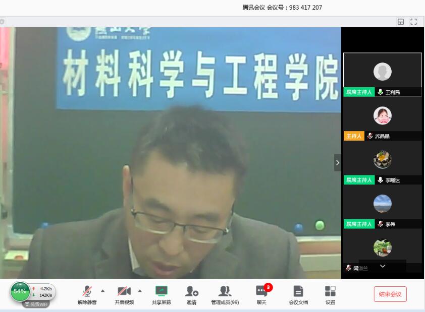 召开2020年春季学期全院网络视频会议,学院国内外107位老师在线参会。会议由学院党委书记李曦达主持。