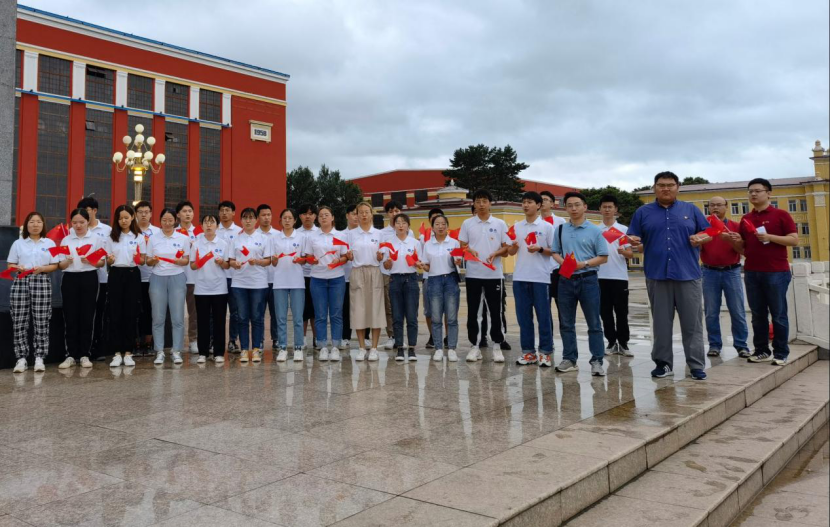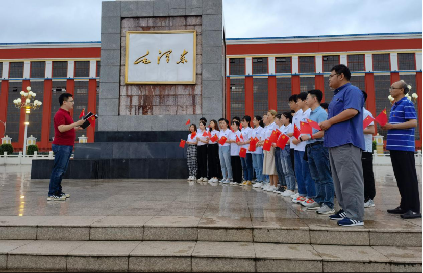 胸怀千秋伟业,恰是百年风华。7月1日下午17时,骤雨初歇,在中国一重广场毛主席雕像处拉开序幕,活动由学生党员姚之绚主持。与会学生党员统一身着燕山大学百年校庆纪念衫,胸前佩戴党员徽章,挥舞着党旗和国旗,齐声高唱国歌。