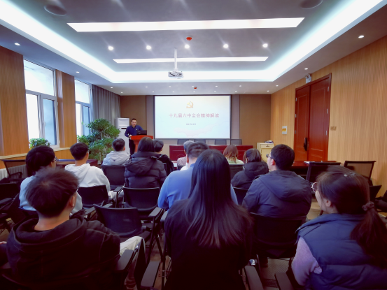 在材料馆B424组织召开党的十九届六中全会精神宣讲会,学院院长王利民作题为“十九届六中全会精神解读”的报告。学院学生代表、辅导员聆听了宣讲报告。