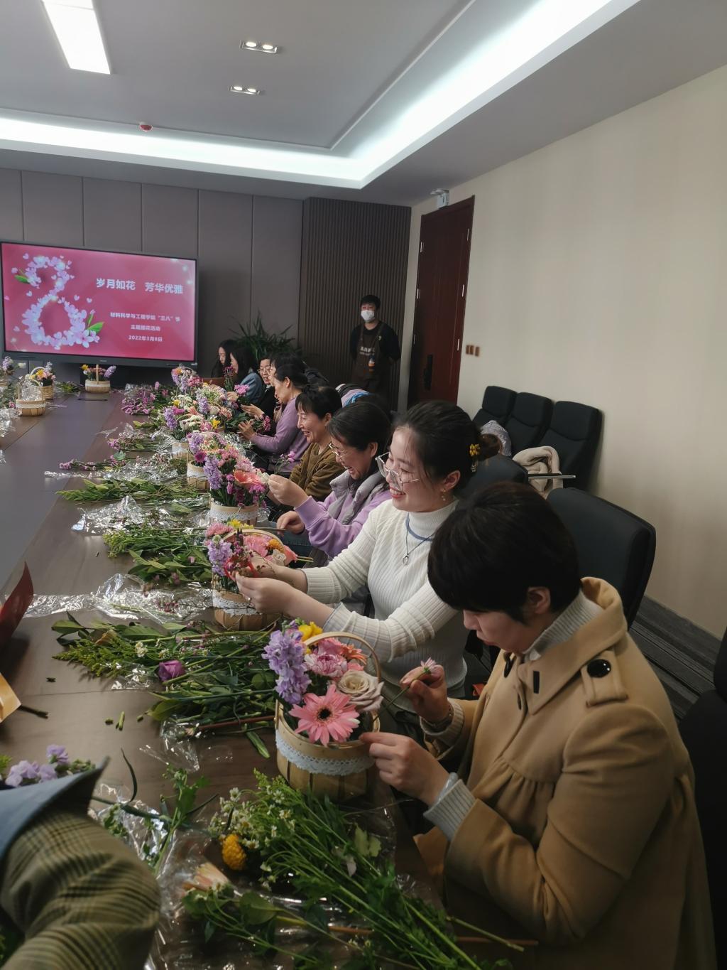 工会在材料A馆325房间组织开展了“岁月如花 芳华优雅”主题插花体验活动。