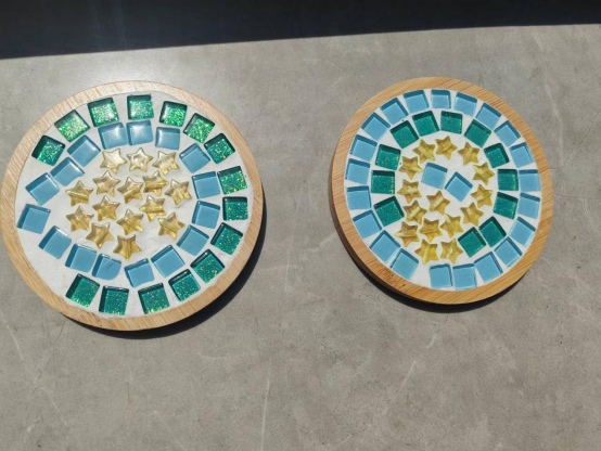 参观体验结束后,家长和孩子们一起制作马赛克杯垫,小小的手工锻炼了孩子们的创造力和动手能力。
