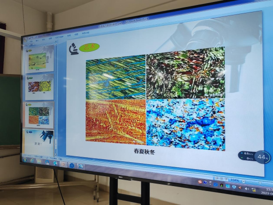 随后,由实验室指导教师为参观的学生讲解岩相显微镜观察无机材料内部结构、金相显微镜观察金属材料内部结构、扫描电子显微镜观察植物表面微观结构等方面知识。