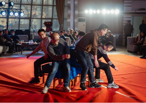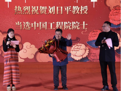 副校长王利民、国重党委书记张世良、学院党委书记王国伟及学生代表为现场观众献上了精彩的歌曲表演,并获得热烈的掌声;“抢凳子”、“你喂我吃”、“捡金豆”这些创意满满的趣味游戏,更是将现场气氛推向了高潮。参与活动的老师们抛却了平日工作的严肃,兴致高昂地投入到游戏中,从中收获了志趣与快乐。在特别致敬环节中,由教职工代表向刘日平院士送上鲜花,向刘日平教授当选中国工程院院士再次表示祝贺。