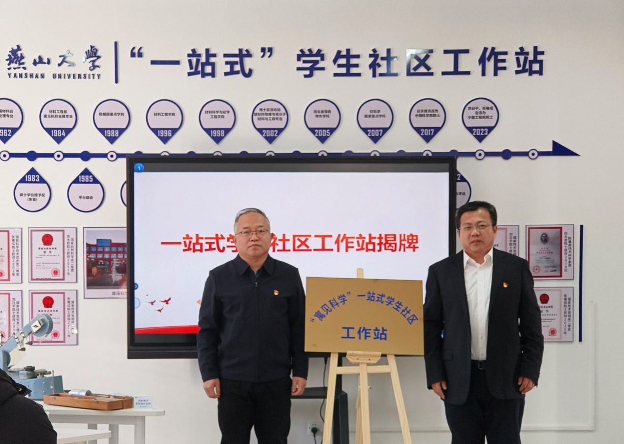 2025年11月18日上午,燕山大学“寓见科学”一站式学生社区工作站新场地启动仪式在西校区一组团隆重举行。校党委副书记蔡星周,党委学生工作部部长、学生社区党工委书记薛传佳,党委学生工作部副部长王银思,Esball官网