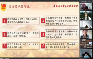 最后,学院团委副书记魏东老师为同学们讲解了“喜迎二十大,永远跟党走,奋进新征程”主题团课,共同学习了共青团史、共青团章程等内容,魏东老师阐述了中国共青团与中国共产党的紧密关系,讲述了《新时代的中国青年》白皮书中新时代中国青年的机遇与挑战,强调共青团员要不断通过政治理论学习,提高思想道德素养,传承百年团史,凝聚青春力量。