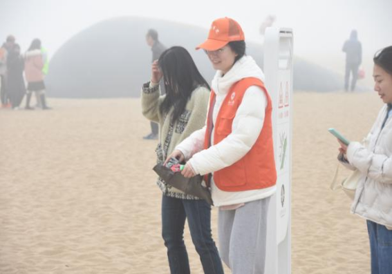 虽然天气有些寒冷,但是志愿者们依旧热情似火,激情高涨。他们逐一捡拾地上的烟头、纸屑、塑料瓶等垃圾并向周边出行的市民朋友倡议,共同维护环境整洁,爱护生态环境,保护自然资源,并劝阻乱丢垃圾等行为。积小善为大善,善莫大焉,志愿行动不止使海滩上的垃圾减少了,也同样感染了在海边散步的人,在活动期间有很多路人主动加入到我们的队伍,与我们一起清理海洋垃圾。