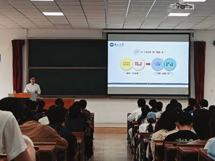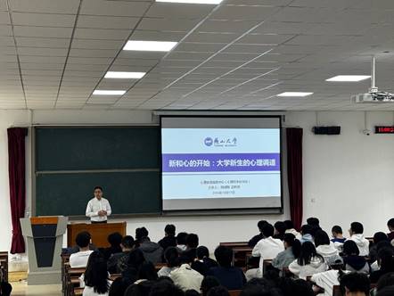 陶建刚以“新和心的开始:大学新生的心理调适”为主题,从新生面临的环境变化、学业压力、人际关系、自我认知等方面入手,深入浅出地讲解了如何在新的环境中进行心理调适,如何有效管理情绪接纳从“C”位到普通一员的变化,以及如何接纳差异并掌握沟通技巧,从而有效处理陌生关系。他通过生动的案例、互动问答和实用的心理调适技巧,帮助新生们更好地理解了大学生活的多面性,并鼓励学生以积极的心态面对未来的挑战,紧紧抓住大学美好时光,奋发向上,去创造无愧于伟大时代的光辉业绩,去成为无愧于靓丽青春的最好自己。