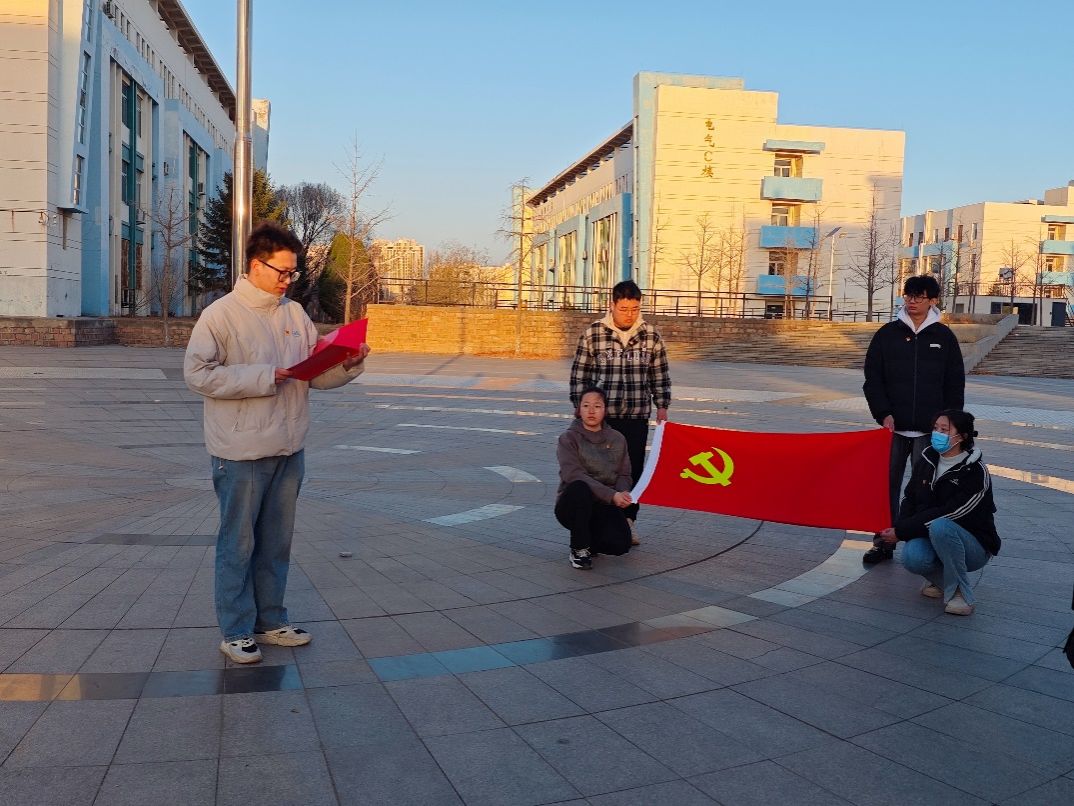 分党校在西校区教学楼广场开展“青春心向党,誓言启新程 ”升旗仪式暨新党员入党宣誓活动。分党校干事王妍和学院新发展的20名学生党员参加了此次活动。