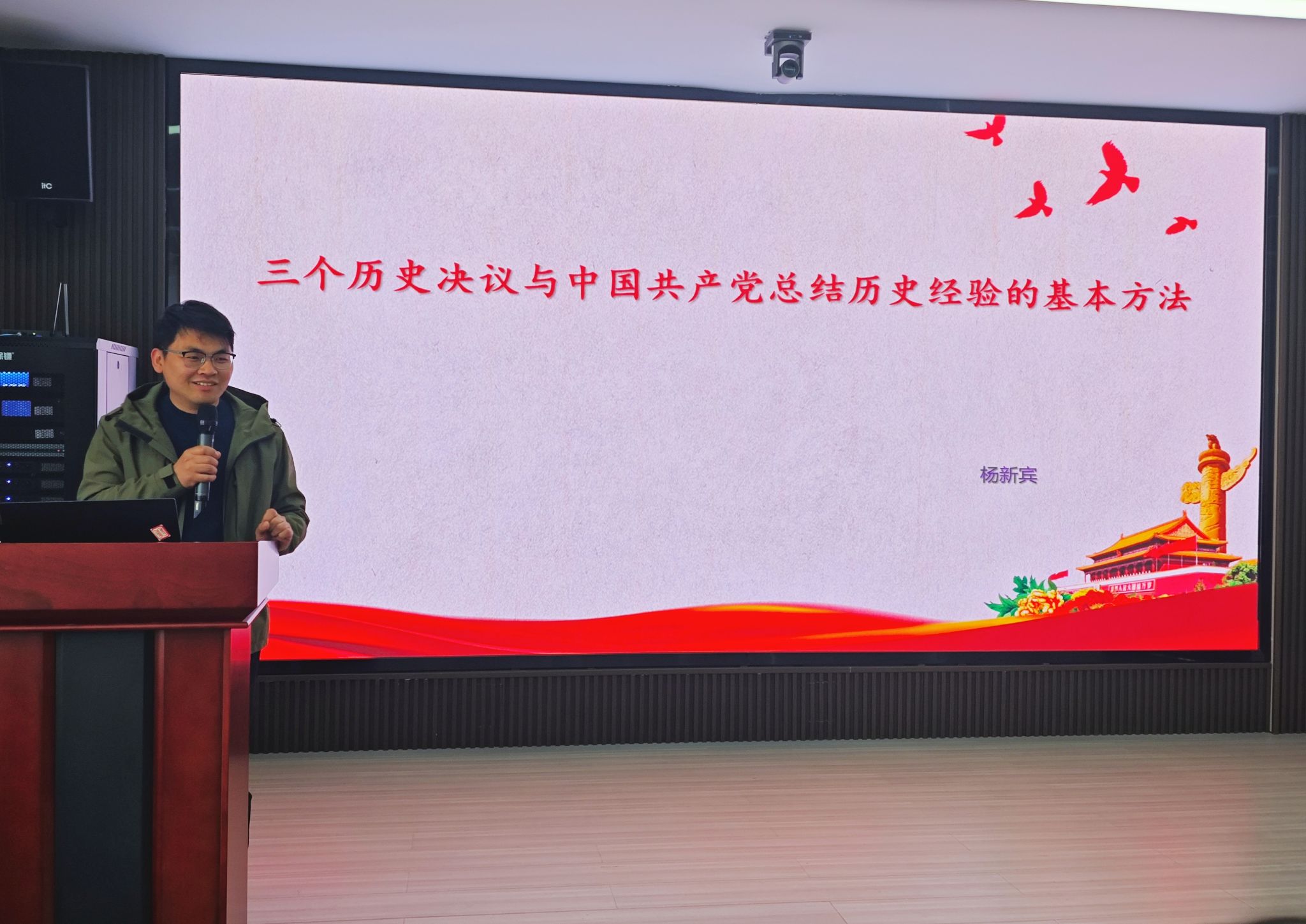 行政楼113会议室以《三个历史决议与中国共产党总结历史经验的基本方法》为主题,为学院24名发展对象和41名学生党员讲授专题党课。