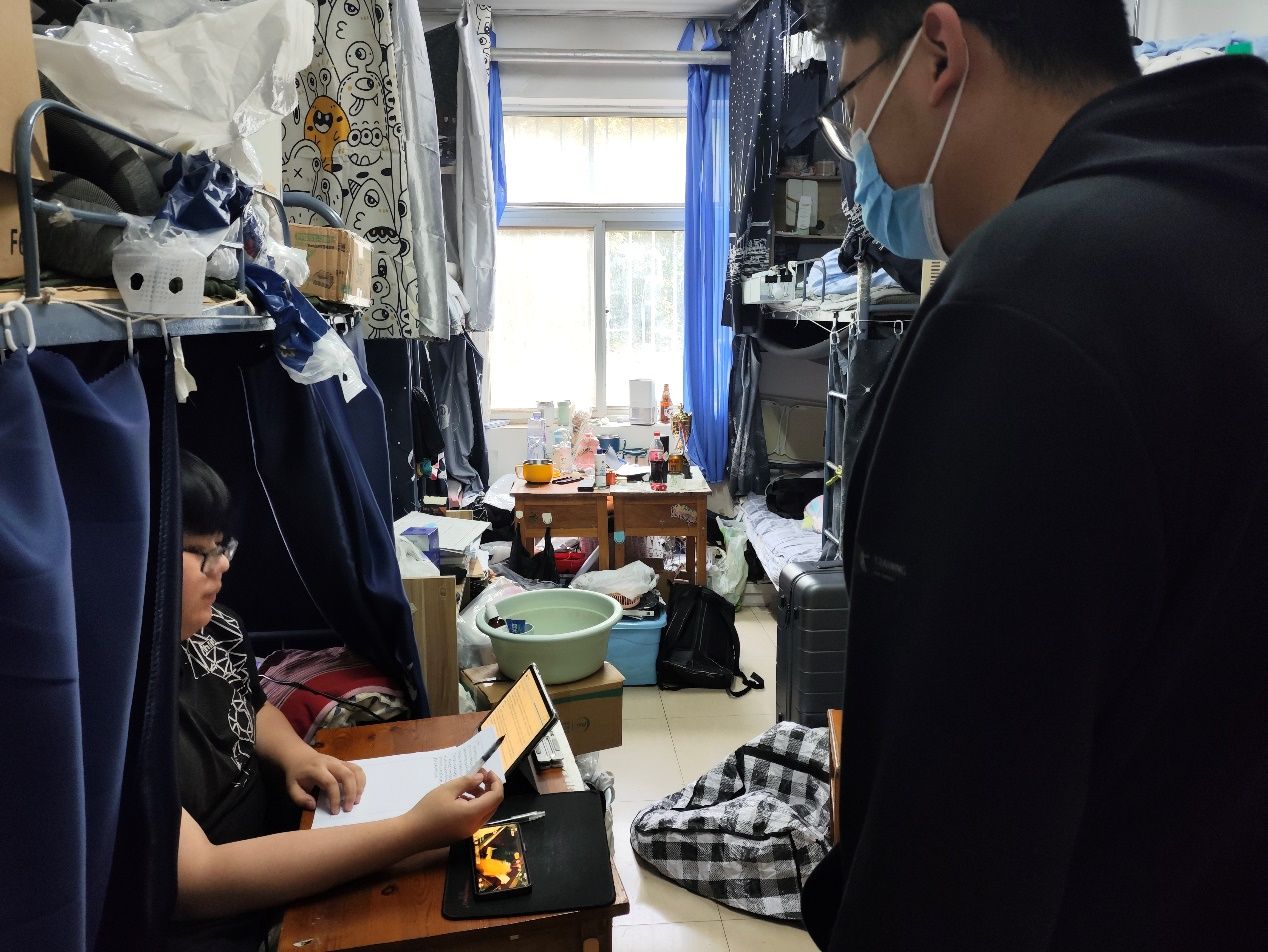 由21名功能型党支部辅导员和学生入党积极分子组成的10支工作队,深入各组团学生寝室,进行安全排查。重点排查内容包含私接电线、违规电器等隐患,温馨提示寝室成员做到“人走断电”。对发现的“人走插排未断电”“无人不锁门”“公共区域杂物过多”等问题,辅导员立即联系责任到人,及时处置整改。