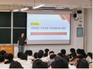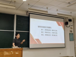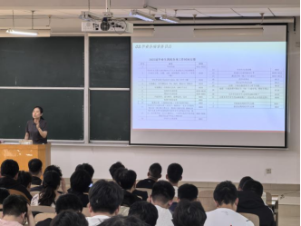 在西二108教室开展以“文明作别书青春,扬帆起航赴山海”为主题的本科阶段最后一课,毕业班辅导员冯晶主讲,全体193名本科毕业生参会。