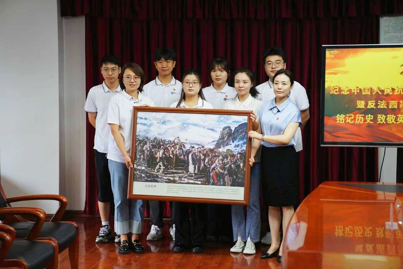 活动伊始,党支部向干休所捐赠了油画作品《长征精神》。画作以红军翻越雪山的壮丽场景为背景,生动展现了革命先辈不畏艰险、勇往直前的精神风貌。支部党员申田田在捐赠仪式上动情表示:“长征精神是中华民族的宝贵财富,作为新时代青年,我们不仅要铭记历史,更要以实际行动传承红色基因,将个人理想融入国家发展大局,为科技自立自强贡献青春力量。”干休所负责人代表全体老干部接受捐赠,并感谢高校与社区的深情厚谊,强调“这幅画作将永久陈列于休养所,成为激励后人奋进的精神坐标”。