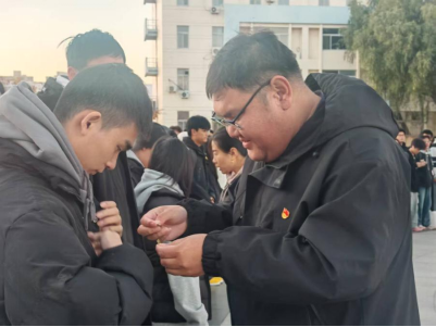 庄严肃穆的升国旗仪式结束后,团委组织部主席胥梦缘宣读了新团员名单,并对他们送上热烈祝贺,提醒新团员们用行动践行入团誓词,发扬先锋模范精神。随后,团委书记魏东老师和2025级本科生辅导员冯晶老师为新团员佩戴团徽,嘱托新团员们牢记闪亮的团徽别在胸前,不仅是一份荣誉,更是一份责任与使命。