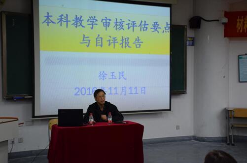 在西校区四教101召开“本科教学审核评估专题动员培训会”。会议特邀请学校审核评估专家徐玉民教授作“本科教学评估要点与自评报告讲座”。学院领导班子成员,全体教师和学生干部代表参加会议,培训会由王丽萍书记主持。
