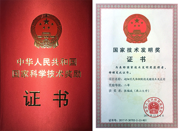 张福成教授主持完成的《超细贝氏体钢制造关键技术及应用》成果获国家技术发明二等奖,这也是他继2002年国家科技进步二等奖后所获得的第二个国家奖。