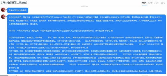硕士研究生第二党支部于5月25日开展了学习贯彻习近平论防范化解重大疫情和突发公共卫生风险的专题学习会,深刻理解了加强疫情防控的重要性。