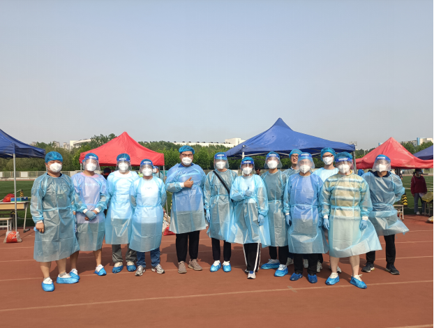 李英梅、付瑞东、李艺君、顾江龙、刘迪、邱海龙、许世清、薛天宇、仝柯、王锁涛、王鹏、于鹏飞、魏东13位教师积极响应学校号召,主动报名参加了6月20日学校的全员核酸检测工作,在战“疫”一线当先锋、作表率,用实际行动践行人民教师的初心使命。为保障各项工作有序、高效开展,教师志愿者们提前来到核酸检测点,根据调度安排,各司其职,分工井然有序,大家分别投入到扫码登记、流程引导、秩序维护等各项保障工作中,为疫情防控贡献力量。