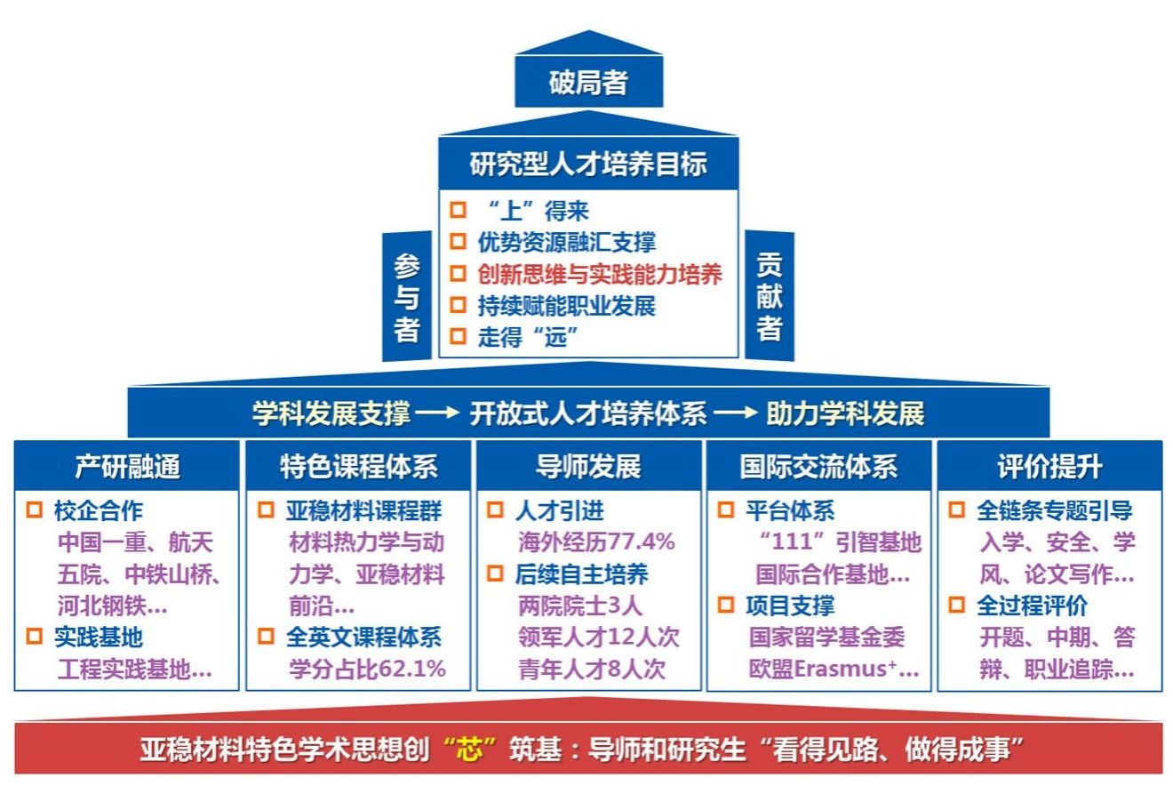 我国科技发展被“卡脖子”的领域,一大半归于材料问题,对材料类创新人才培养提出了更高要求。燕山大学材料科学与工程学科溯源“哈工大—东重”材料专业历史积淀,凝练发展亚稳材料学术思想,融入并引领家国情怀和国际视野下的研究型人才培养模式创新实践,推动了人才培养和学科建设实质性协同发展。