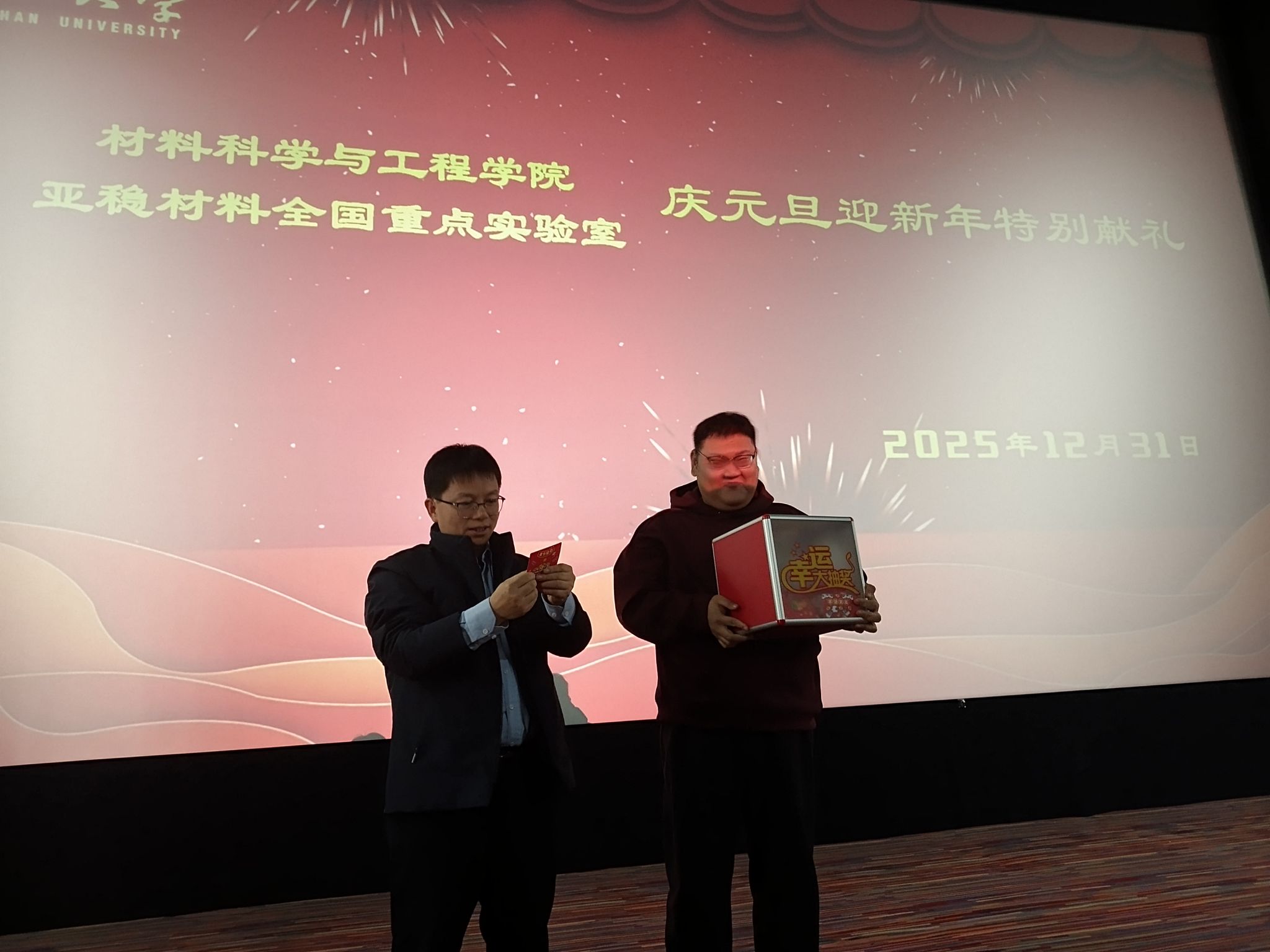 党委书记王国伟、亚稳材料全国重点实验室主任彭秋明分别总结汇报了2025年学院、全重重点工作,并向辛勤耕耘的全体教工致以最诚挚的新年祝福——愿大家身体安康、家庭和美、事业精进,也祝愿学校与学院全重在新的一年里再攀高峰、再谱华章。